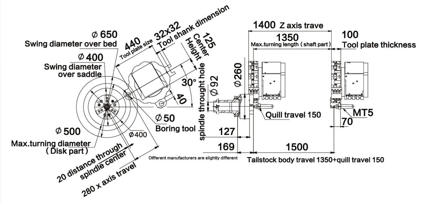 | Đường kính tiện tối đa | mm | Loại đĩa Φ 500 | ||